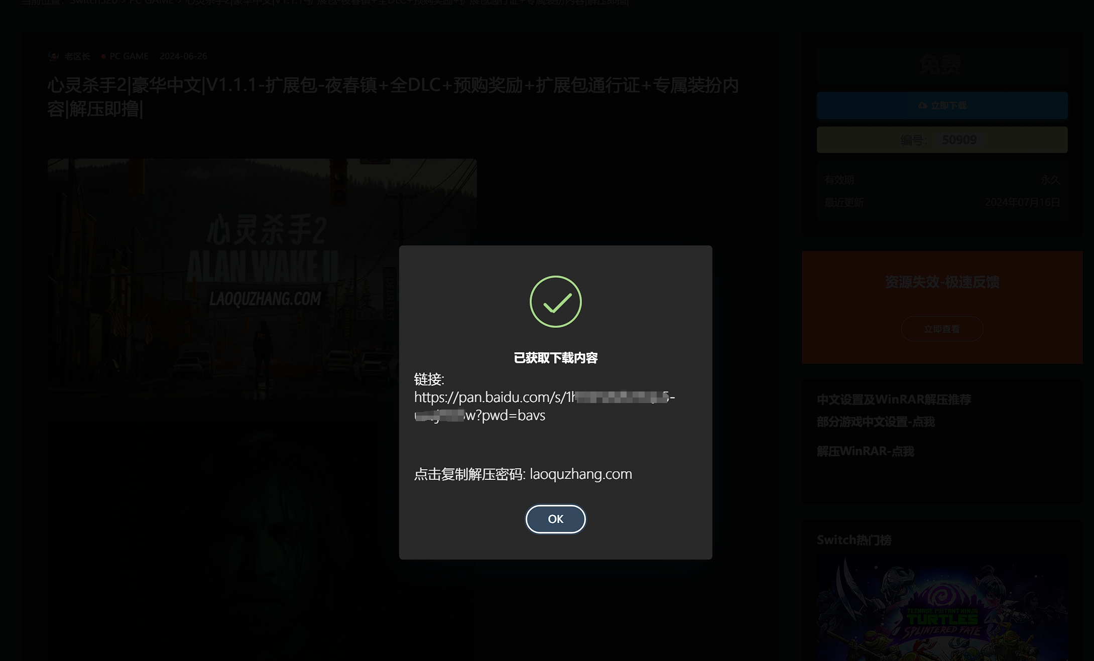 优化下载体验,百度网盘免输入提取码,可直接复制解压密码等